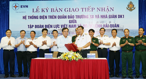 Ngày 18/7/2017 tại Hà Nội, Tập đoàn Điện lực Việt Nam và Bộ Tư lệnh Hải Quân đã tổ chức Lễ ký Biên bản bàn giao, tiếp nhận hệ thống năng lượng sạch và chiếu sáng trên quần đảo Trường Sa, nhà giàn DK1 và ký kết Thỏa thuận hợp tác giữa EVN và Bộ Tư lệnh Hải quân về việc cung cấp điện cho quần đảo Trường Sa và nhà giàn DK1.